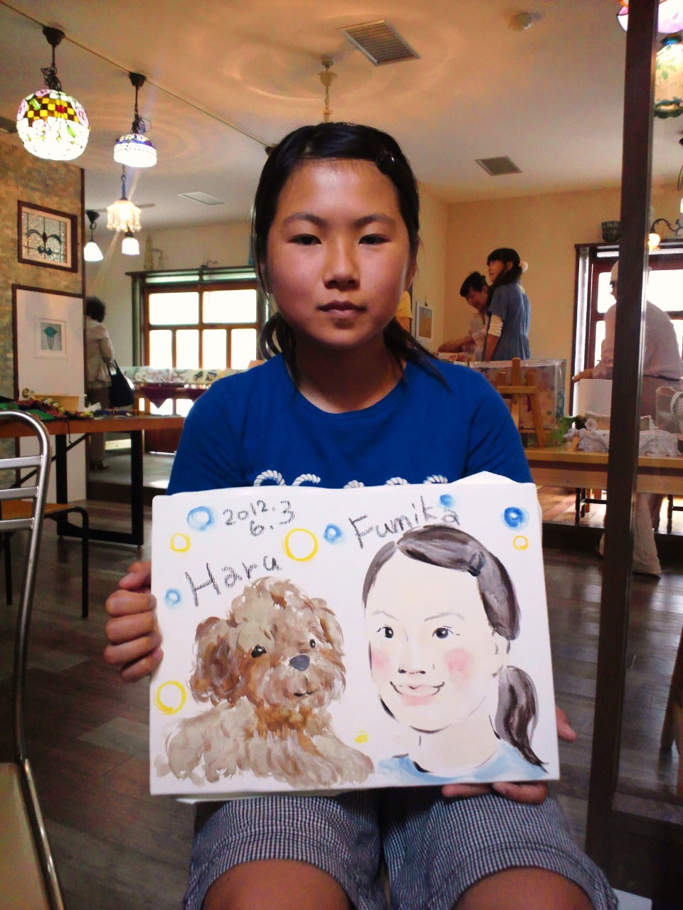 私は似顔絵をさせて頂いてたんですけど、顔にペイントしたお客様がときどきこられてました(笑)*