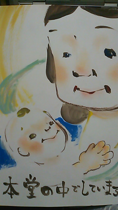 で、今回の『こどもまつり』ではその訶利帝母様の御開帳と言う事で、本堂内のその仏像の横で絵馬に似顔絵を描かせて頂いきました!